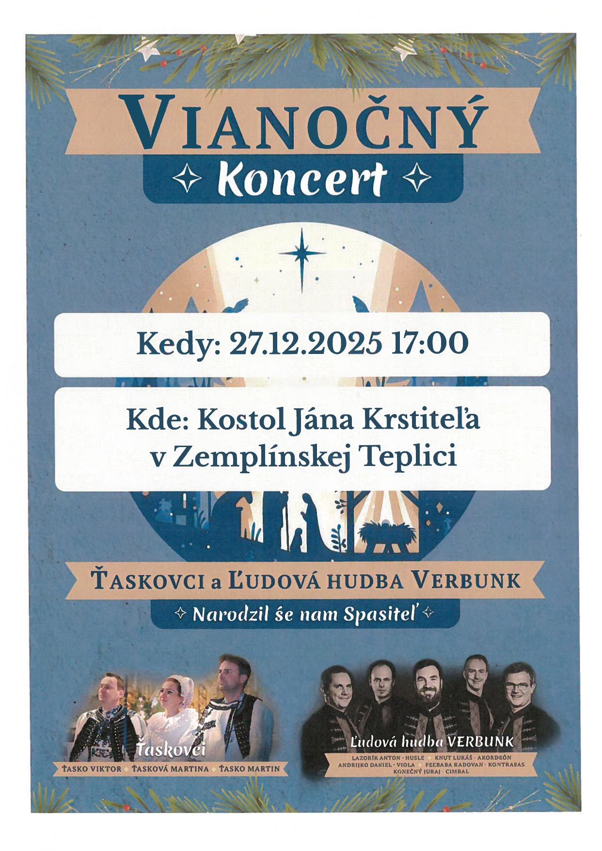 ktorý sa uskutoční v kostole Jána Krstiteľa v Zemplinskej Teplici dňa 27.12.2025 o 17:00 hod.